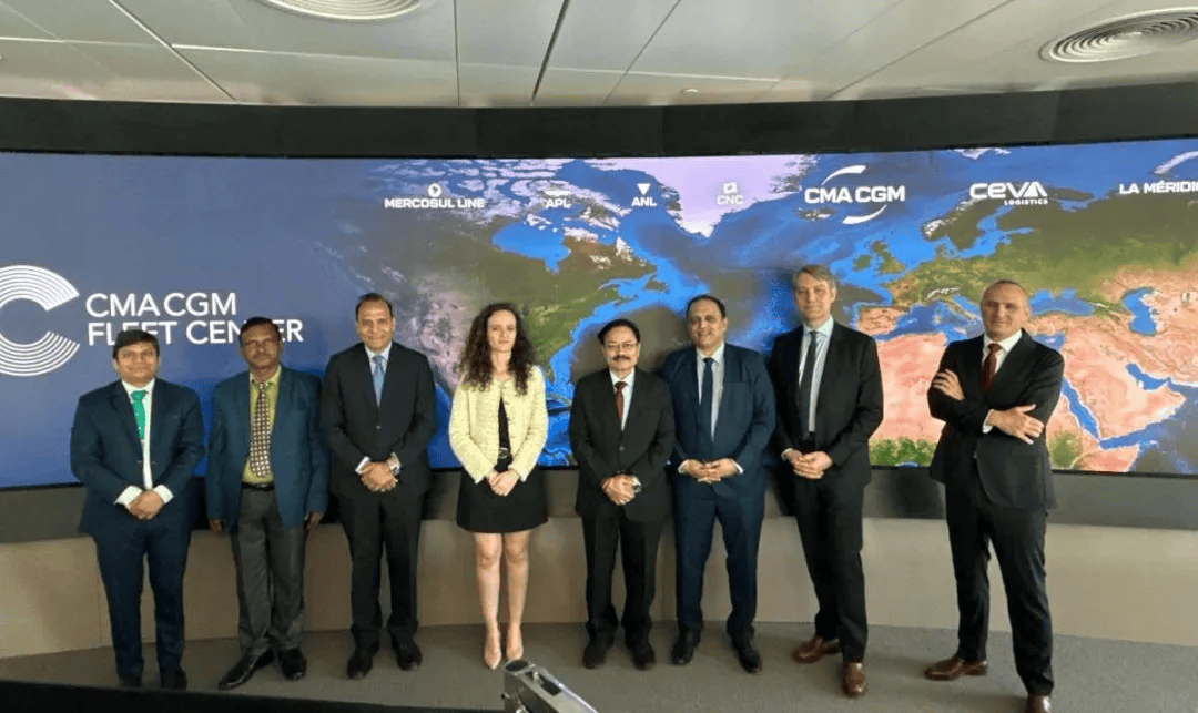 6月12日,印度港口、航运和水道部(MOPSW)秘书长TK Ramachandran访问了位于法国马赛的达飞海运集团(CMA CGM)全球总部。早在今年2月份,印度总理莫迪曾访问了达飞位于马赛的总部,与该公司首席执行官Rodolphe Saadé会面,讨论了达飞在印度的发展计划等问题。